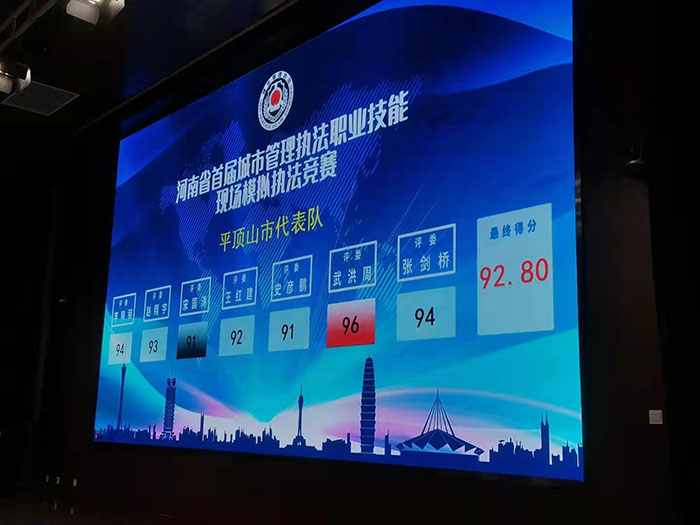 河南省住房和城乡建设厅、省建设工会主办“河南省首届城市管理执法职业技能竞赛”圆满落下帷幕,其中现场模拟执法竞赛各参赛队进行现场执法演示,现场专家评委通过无线打分器现场打分,现场亮分,公平公开。经过一上午激励紧张的比赛,一共产生9个团体奖,其中获得一等奖的是郑州市代表队,获得二等奖的的是驻马店市、安阳市、平顶山市3个代表队,许昌等5个代表队获三等奖。