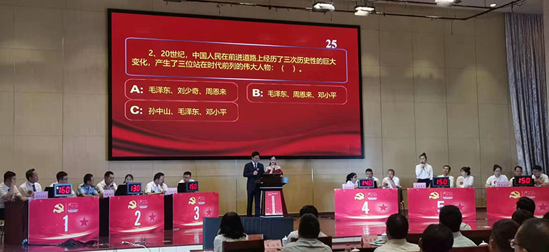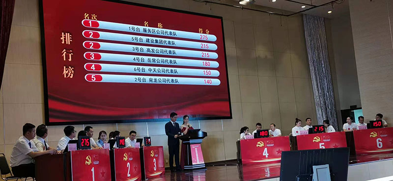 经过初赛的激烈角逐,共有6支代表队进入决赛,进行巅峰对决。比赛分初露锋芒、同心协力、风驰电掣、争分夺秒及决胜之巅5个篇章,题目类型丰富多彩,既有选择题,填空题,判断题,简答题,线索题等。参赛各代表队竞相展现了丰富的党史知识,反应迅速、稳扎稳打,你追我赶、互不示弱,把赛场气氛推向高潮。最终服务区公司获得一等奖,高发公司,建设集团获得二等奖,恭喜大家。