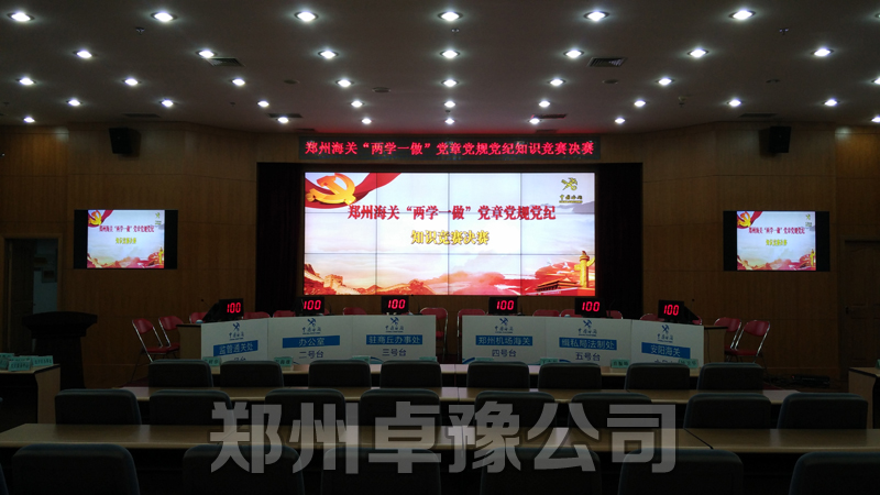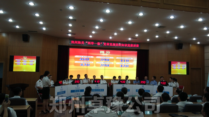热列祝贺郑州海关“两学一做”党章党规知识竞赛决赛隆重举行,郑州卓豫公司全称提供抢答器,记分屏,液晶电视,知识竞赛软件出题系统设计制作。