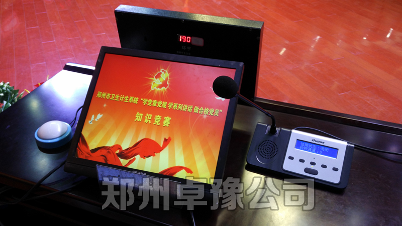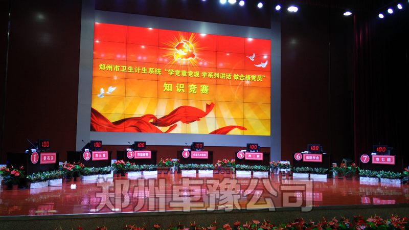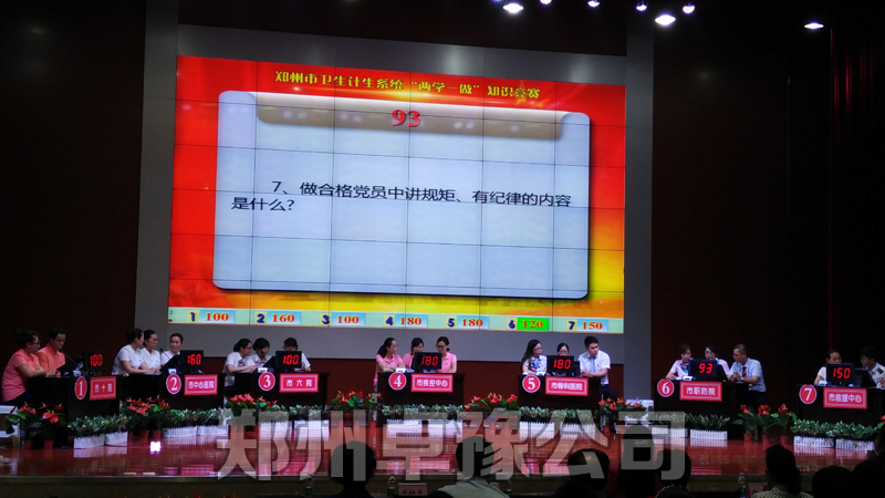 热热列祝贺郑州市卫计委“两学一做”知识竞赛隆重举行,郑州卓豫公司全称提供抢答器,记分屏,液晶电视,知识竞赛软件出题系统设计制作。