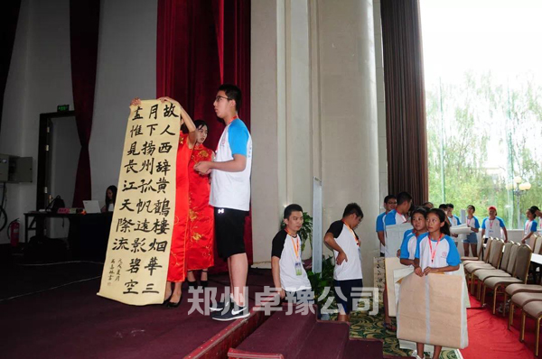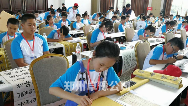 此次大赛分为儿童组和少年组,选手创作时间为两个小时。比赛现场,选手们年龄虽小,但毫不怯场,一个个挥毫落墨,游刃有余。真草隶篆,诸体皆精;中堂对联,应有尽有。
