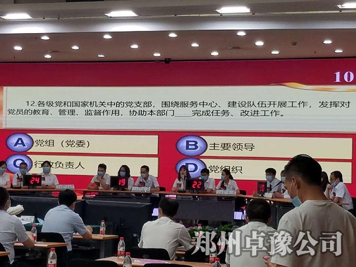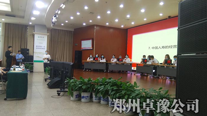中国人寿河南省公司 “爱河南 爱国寿 爱岗位 攀高峰” 青年知识竞赛圆满落下帷幕,郑州卓豫公司全称提供抢答器设备、电子计分屏、无线答题器、知识竞赛出题软件、现场技术服务等等。