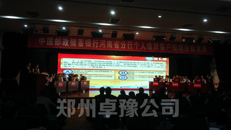 热列祝贺河南省邮储银行客户经理信贷知识竞赛决赛隆重举行,郑州卓豫公司全称提供抢答器,记分屏,液晶电视,知识竞赛软件出题系统设计制作。