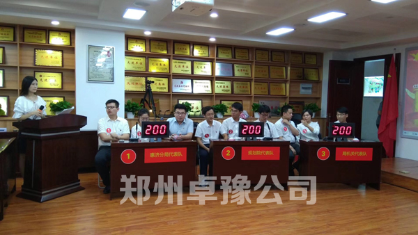 本次大赛采用的是郑州卓豫公司自主研发的专业知识竞赛设备,题目设计与制作、比赛桌子设计与包装等等。