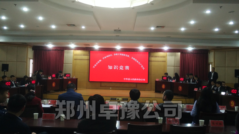 热列祝贺中牟县人民政府办公室两学一做知识竞赛隆重举行,郑州卓豫公司全称提供抢答器,记分屏,液晶电视,知识竞赛软件出题系统设计制作。