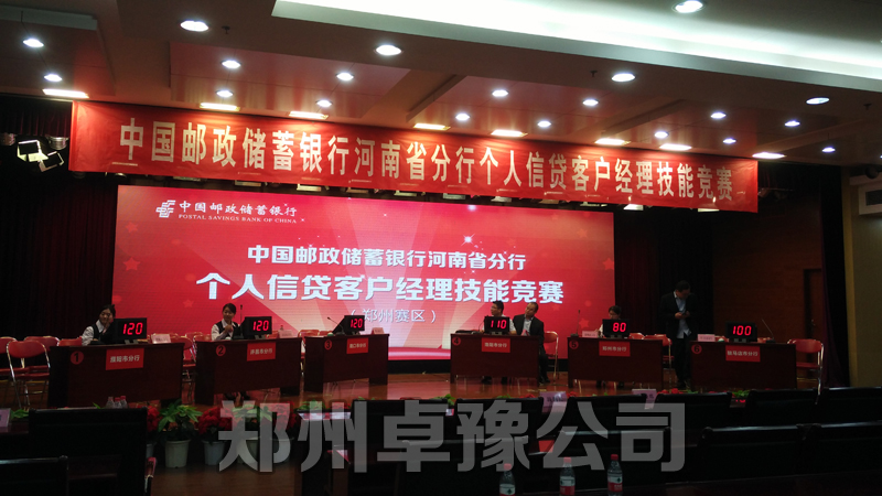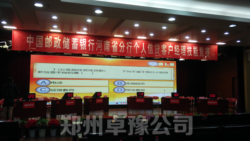 热列祝贺河南省邮储银行个人信贷知识竞赛(郑州赛区)隆重举行,郑州卓豫公司全称提供抢答器,记分屏,液晶电视,知识竞赛软件出题系统设计制作。