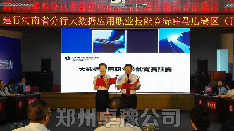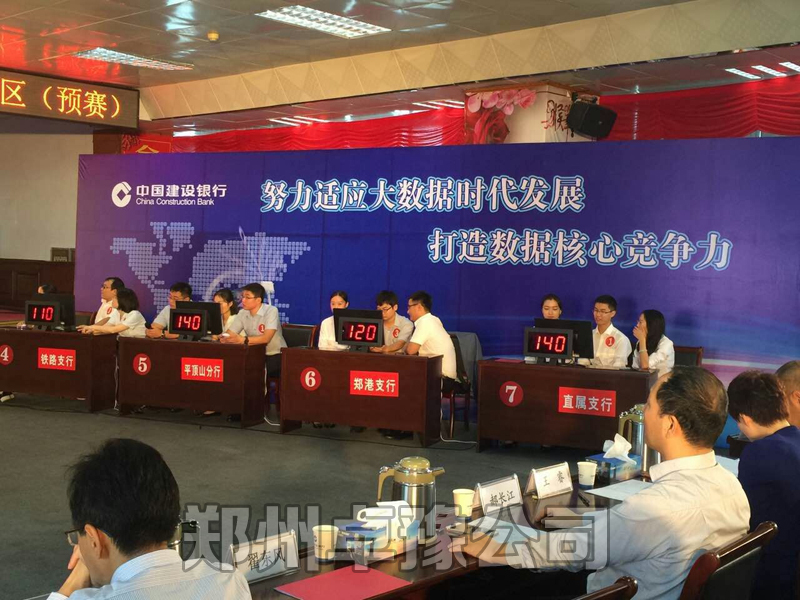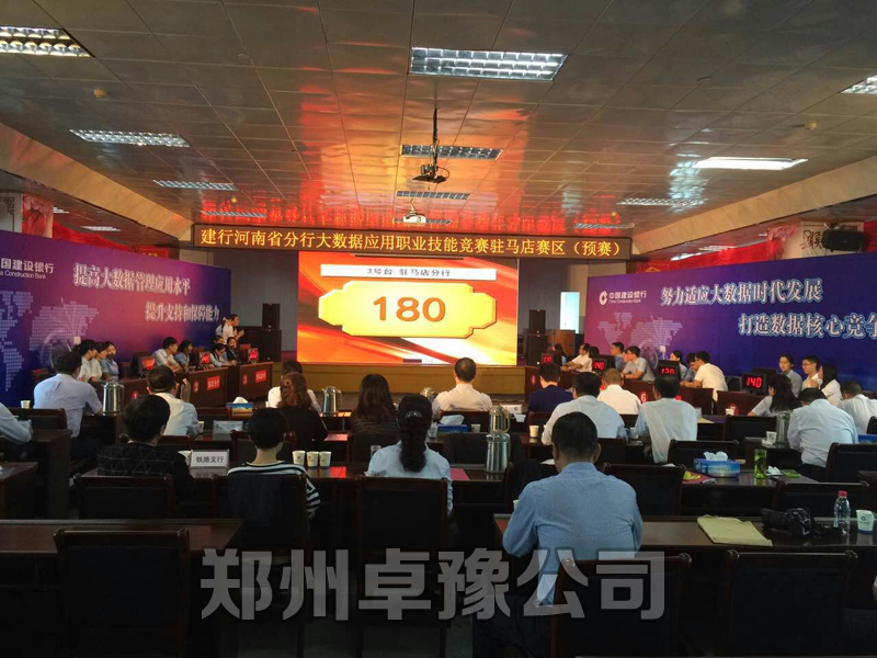 热列祝贺河南省建设银行大数据应用知识竞赛(驻马店赛区)隆重举行,郑州卓豫公司全称提供抢答器,记分屏,液晶电视,知识竞赛软件出题系统设计制作。