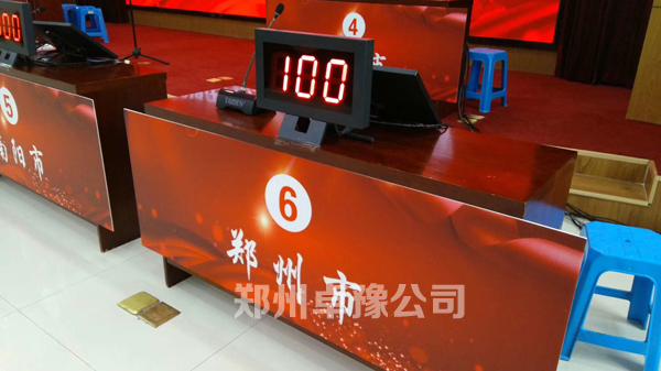 演讲比赛环节参赛队由台号从小到大依次进行演讲,评委现场打分,大屏幕显示计时,评委采用升级版打分器,液晶显示打分情况,打多少分,有没有成功一目了然,还可以作为投票器,赞成“ √ ” 反对“ × ” 弃权“ ?”。