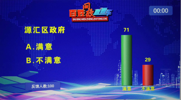现场投票环节:由民评代表进行现场投票,结合网络投票得出总评结果并向社会公开。民评代表现场投票非常简单,每位代表一个投票器,如果是“满意”在投票器上点击数字 “1” 相反 “不满意” 在投票器上点击数字 “2”然后按“OK”键就OK了,大屏幕会显示投票结果。