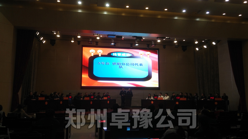 热列祝贺河南高发公司两学一做知识竞赛隆重举行,郑州卓豫公司全称提供抢答器,记分屏,液晶电视,知识竞赛软件出题系统设计制作。