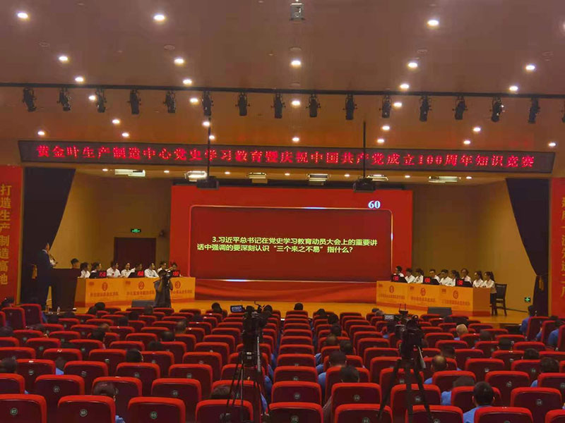 河南中烟黄金叶生产制造中心“学党史 悟思想 办实事 开新局”党史学习教育知识竞赛总决赛隆重举行,经过预赛的选拔,有6只代表队参加总决赛,决赛设置4个环节,每个环节结束还有观众答题,现场气氛异常热烈,最终各个奖项花落各家,恭喜大家。