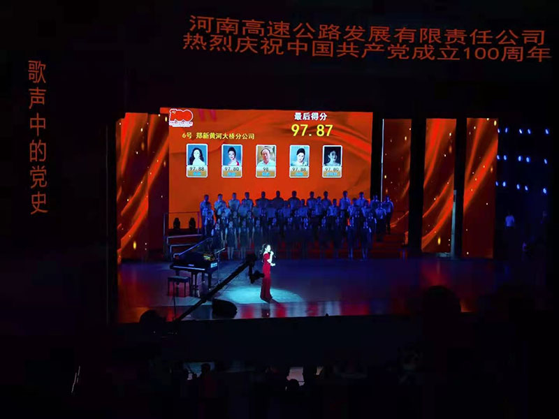 河南高速公路发展有限责任公司,“歌声中的党史”红歌大合唱比赛成功举行!比赛现场,来自公司所属单位、公司机关共14支代表队和2支表演队,着装整齐、情绪饱满,以精彩的舞台表演,表达了对中国共产党、伟大祖国、新时代的赞美与感恩,给现场观众带来了一场视听盛宴。经过评委认真审判,最终安新、桃花峪分公司荣获一等奖;信阳、洛阳、郑新、驿阳分公司荣获二等奖,三门峡、商丘、郑州、周口、开封、禹登、南阳、潢淮分公司荣获三等奖。